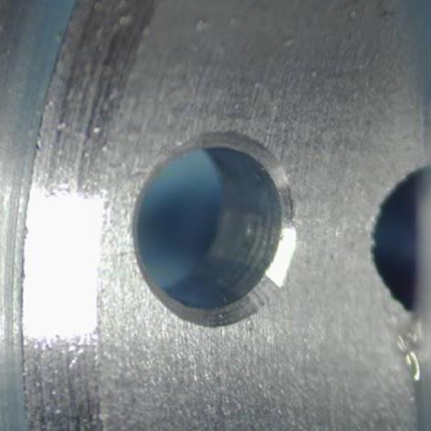 加工结果:刃口锋利,加工轻快,倒角光洁度好,一次过孔双面倒角去毛刺,且无二次毛刺产生。