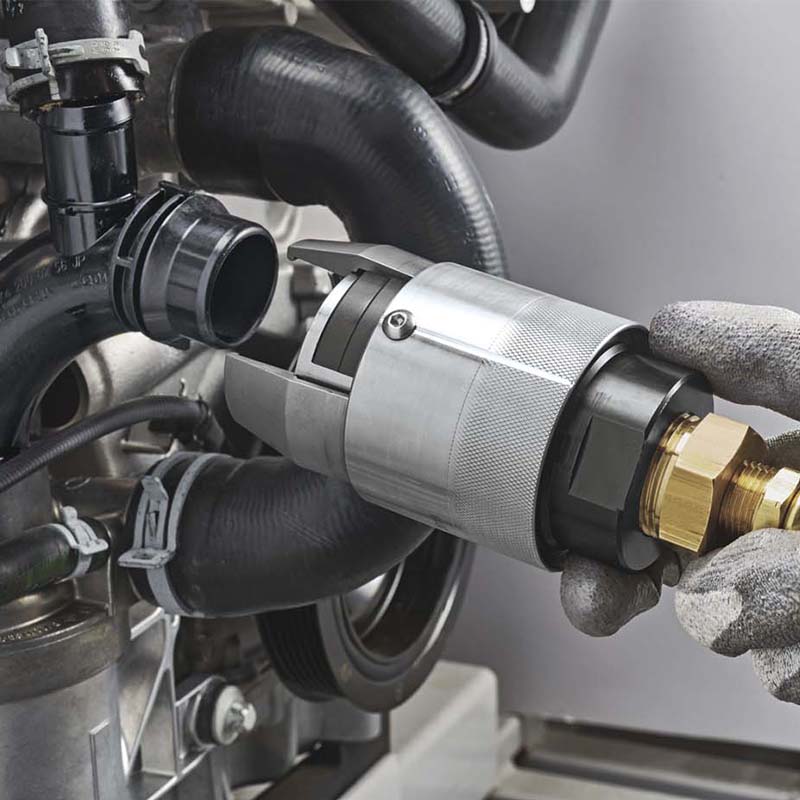 驱动方式手动套筒: 简单的、符合人体工程学的套筒动作,消除了重复 性的扭动和旋转--推动即可连接,拉出即可断开。